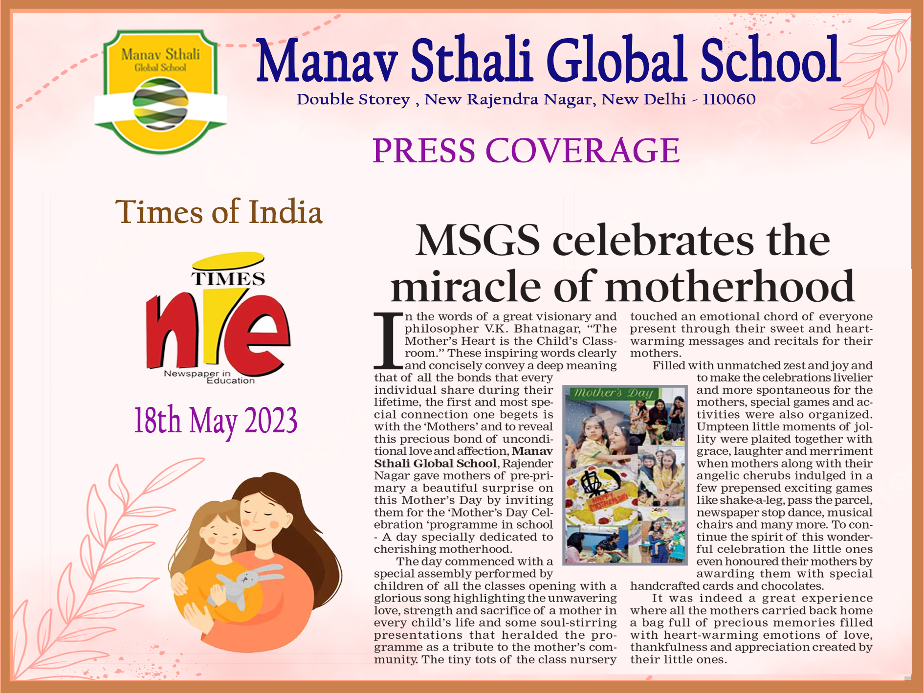 Mst. Panav Jain of Class V , Ms. Yahvi Pareek of Class IV , Ms. Aarna Agiwal of Class IV and Mst. Vidyaansh Sabharwal of Class V won Gold medal (Under 11) in 3rd Manav Sthali Skating Championship, 2025. Mst. Kiaan Khandelwal of Class III won Silver medal in in 3rd Manav Sthali Skating Championship, 2025. Ms. Aradhya Jain of Class II , Mst. Tejas Kumar of Class IV and Mst. Jaksh Kapoor of Class VI won Gold medal in 3rd Manav Sthali Skating Championship, 2025. Mst. Vihaan Jain of Class V (Under 11) and Mst. Guntaj Singh Walia (Under 9) of Class II won Bronze medal in in 3rd Manav Sthali Skating Championship, 2025.