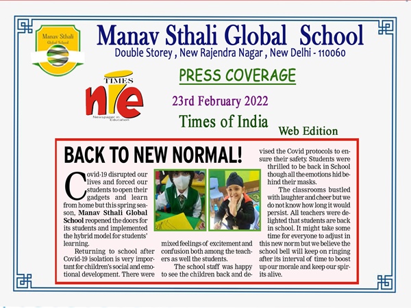 Mst. Panav Jain of Class V , Ms. Yahvi Pareek of Class IV , Ms. Aarna Agiwal of Class IV and Mst. Vidyaansh Sabharwal of Class V won Gold medal (Under 11) in 3rd Manav Sthali Skating Championship, 2025. Mst. Kiaan Khandelwal of Class III won Silver medal in in 3rd Manav Sthali Skating Championship, 2025. Ms. Aradhya Jain of Class II , Mst. Tejas Kumar of Class IV and Mst. Jaksh Kapoor of Class VI won Gold medal in 3rd Manav Sthali Skating Championship, 2025. Mst. Vihaan Jain of Class V (Under 11) and Mst. Guntaj Singh Walia (Under 9) of Class II won Bronze medal in in 3rd Manav Sthali Skating Championship, 2025.